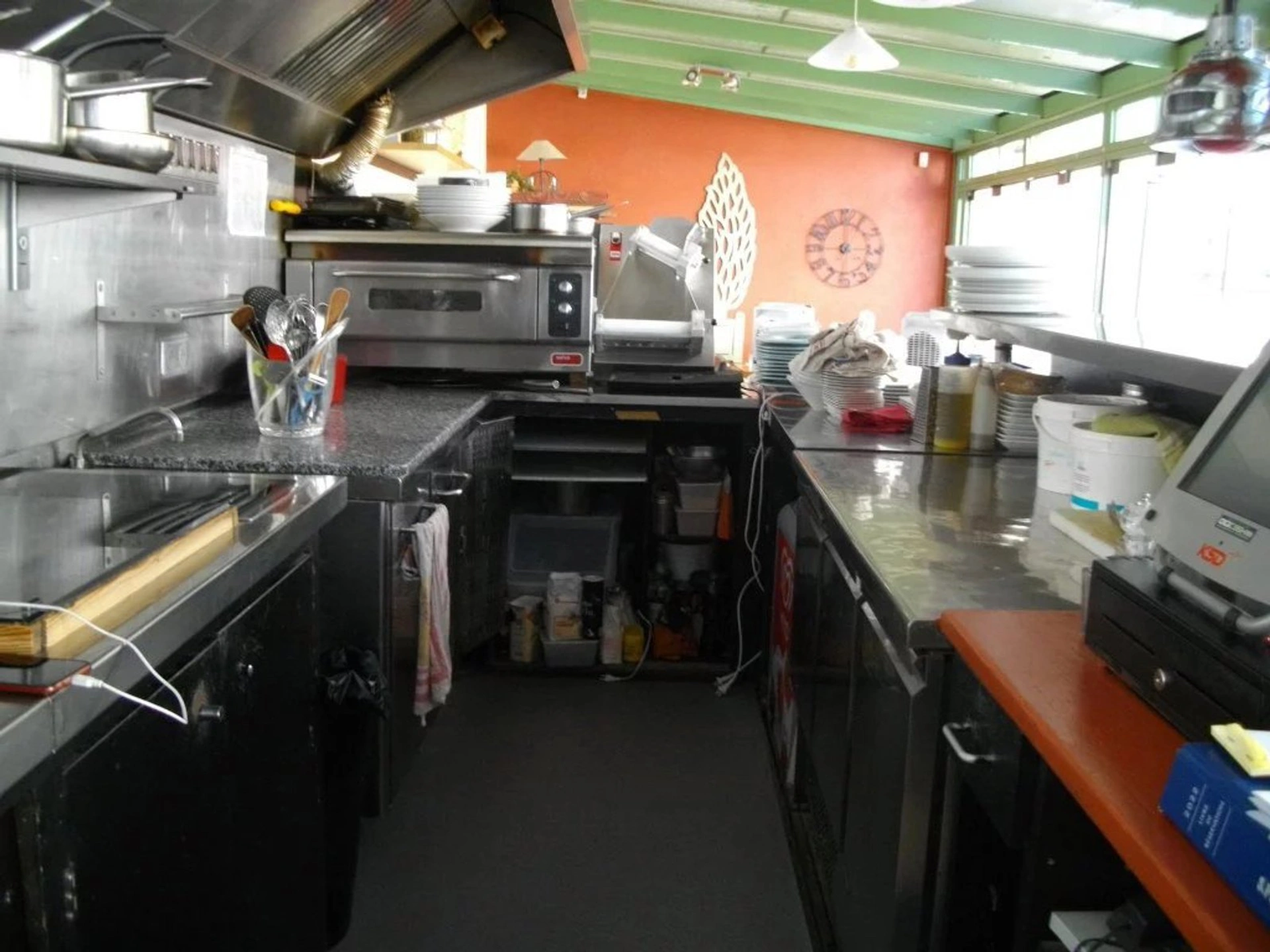 La cuisine ouverte est entièrement équipée, incluant notamment un four à pizzas – un atout idéal pour diversifier votre offre culinaire.