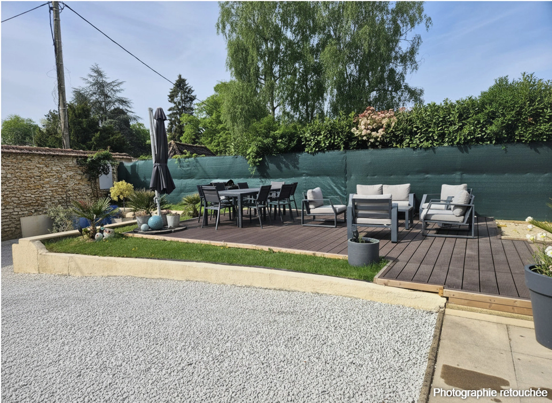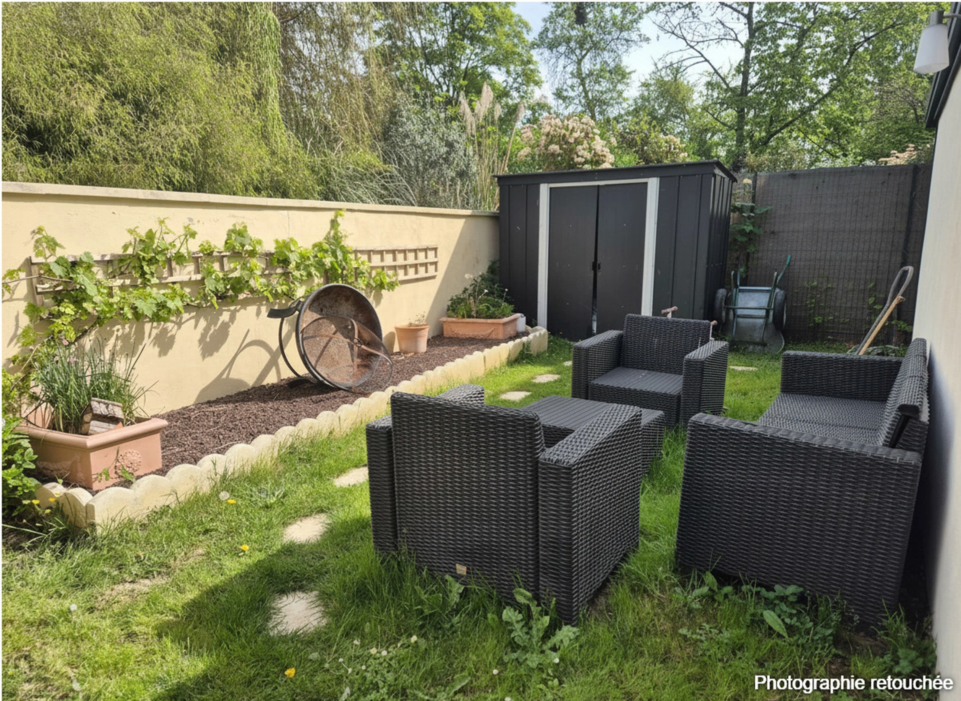 À l’extérieur, vous profiterez d’une agréable terrasse exposée plein sud, idéale pour les beaux jours, d’un terrain de pétanque pour vos moments de détente, d’un jardinet intimiste et de deux abris de jardin.