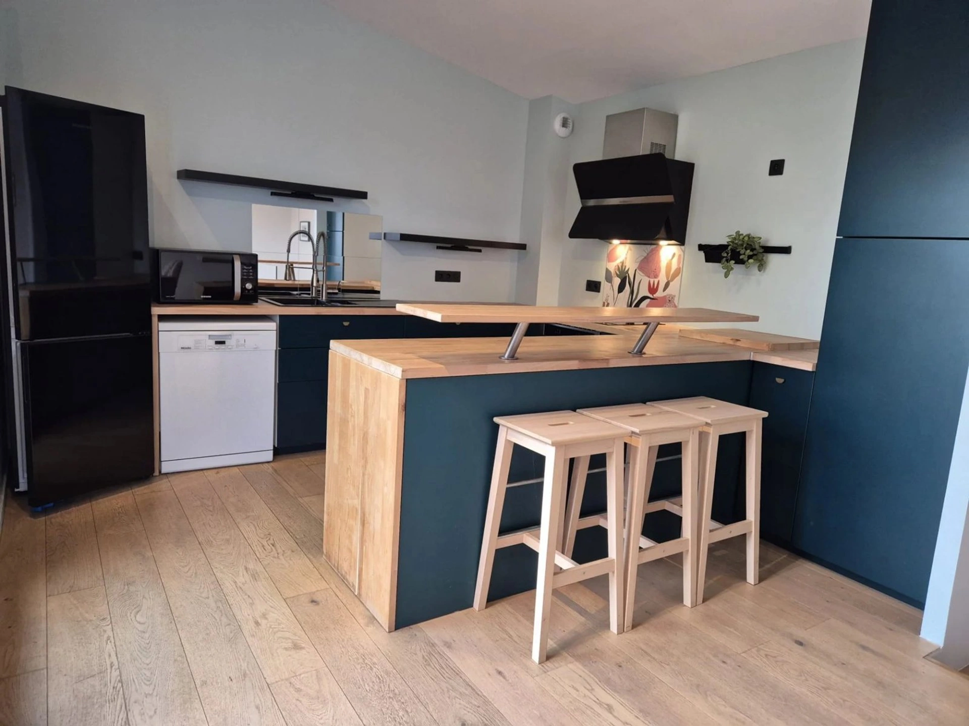 Une cuisine moderne et très bien organisée. Un poêle à bois installé dans le salon réchauffera vos soirées hivernales.