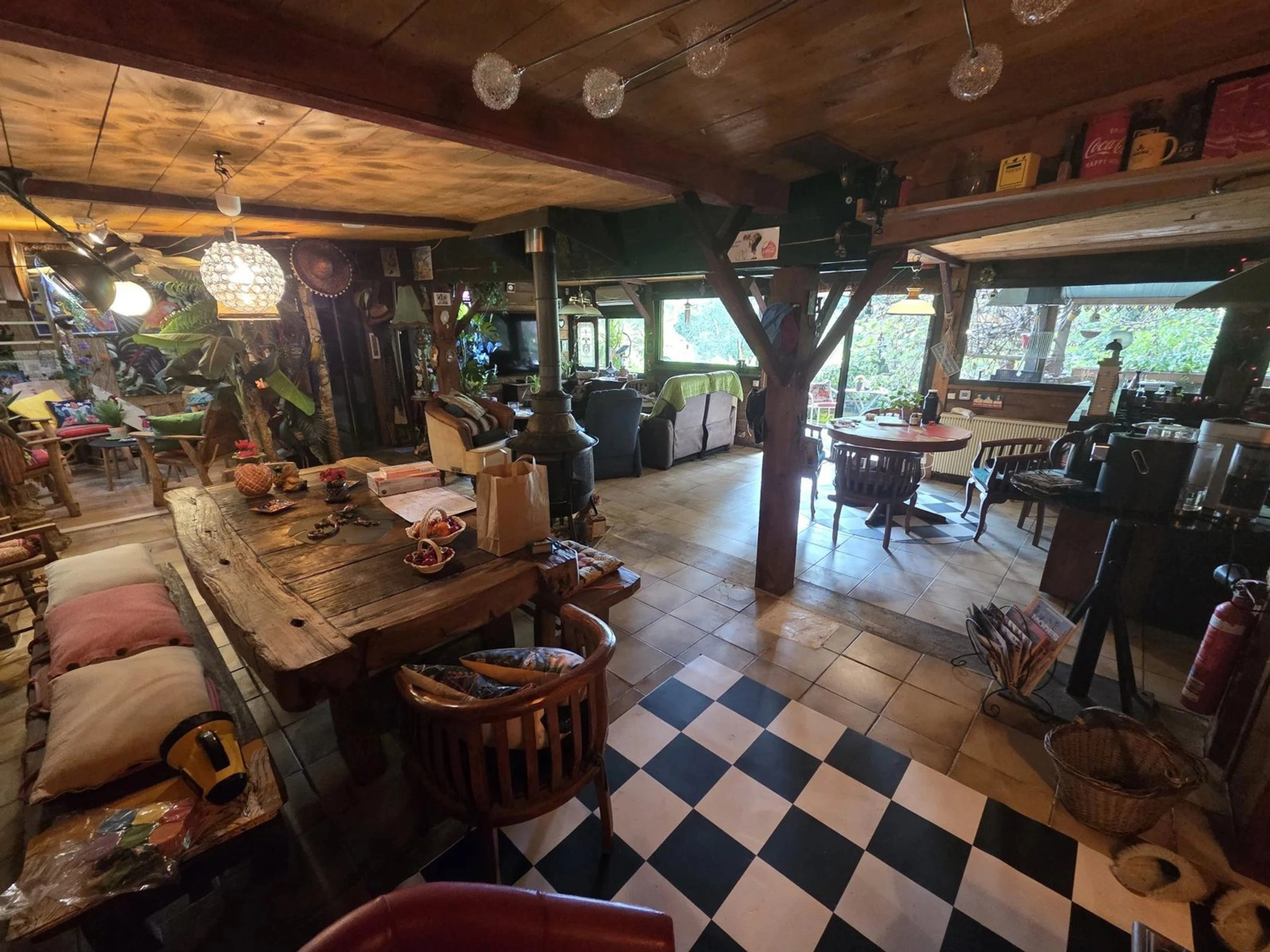 Son espace de vie de 70 m² regroupé autour d'un poêle à bois central en fait le parfait lieu de retrouvailles amicales ou familiales.