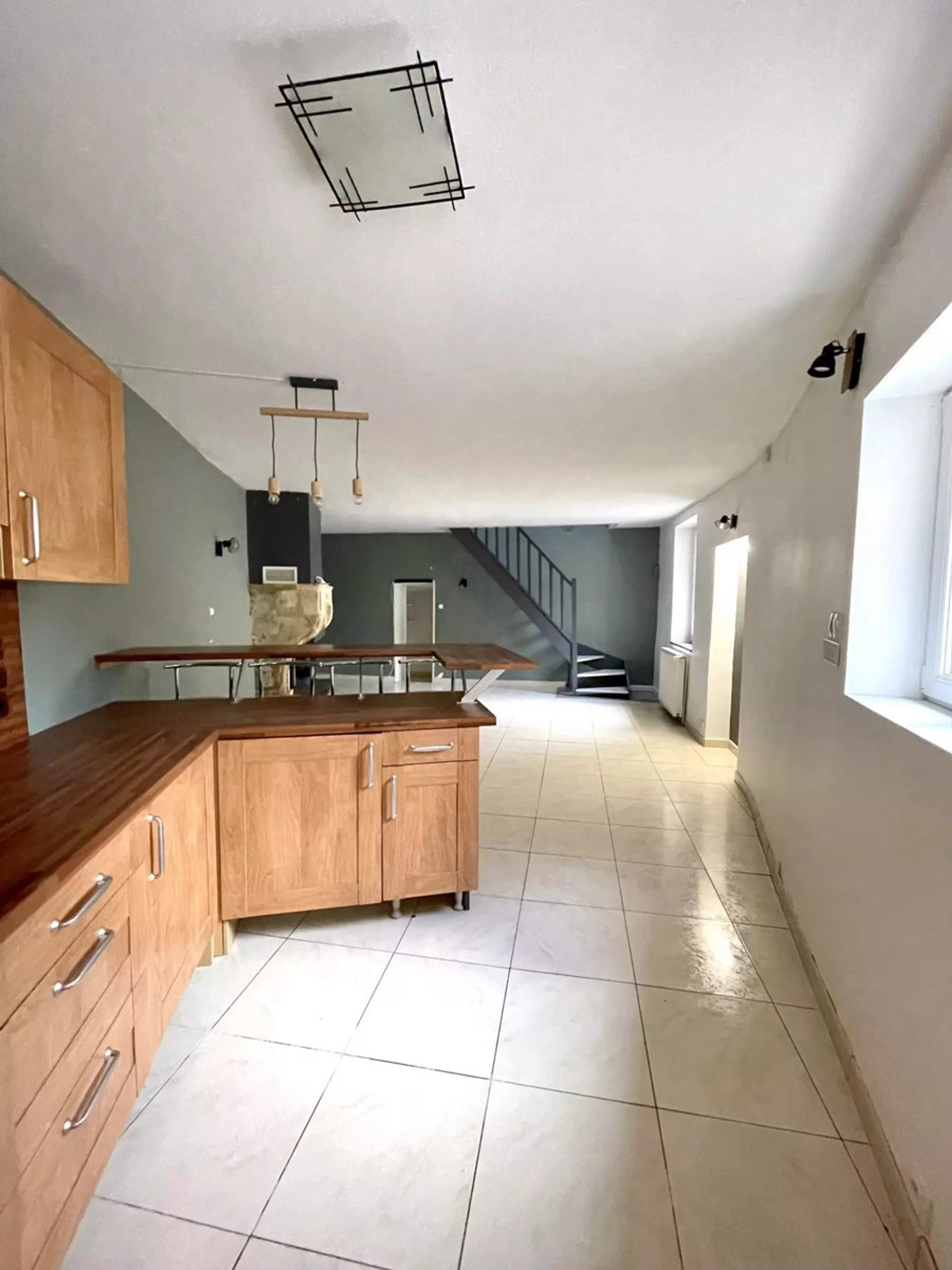 • Au rez-de-chaussée, découvrez une grande pièce de vie de 35m2 environ, lumineuse avec cuisine équipée moderne et cheminée fonctionnelle, une salle de bain, un toilette séparé.
